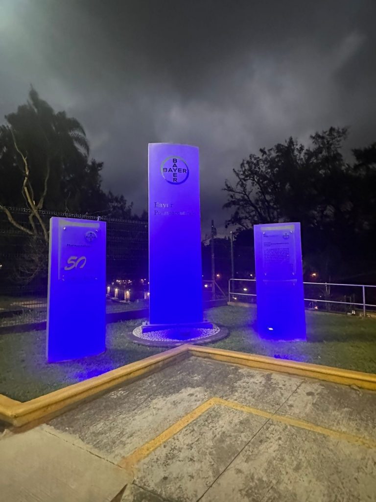 Como parte de esta conmemoración, los espacios de Bayer se iluminaron de azul. Un gesto simbólico que representa la concientización sobre el autismo.